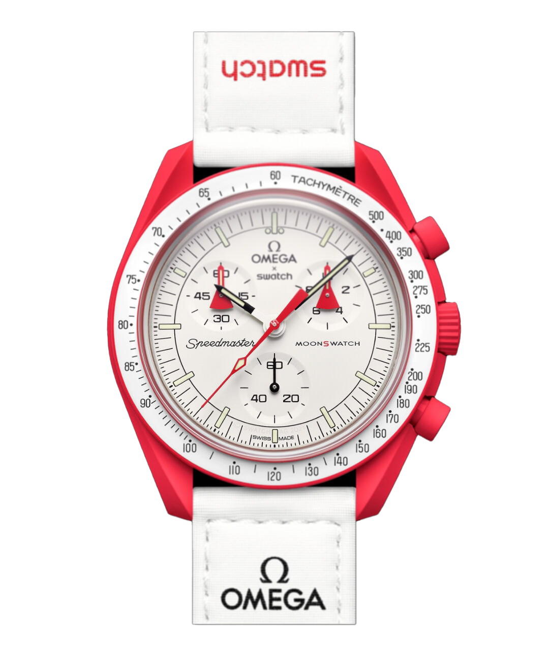 A Coleção Bioceramic MoonSwatch, apropriadamente batizada com os nomes dos corpos planetários do nosso sistema solar; Da estrela gigante no centro ao planeta anão na sua periferia; Cada modelo reúne todas as características do lendário OMEGA Speedmaster Moonwatch, representando a nossa primeira interpretação exclusiva e realista do icônico relógio que marcou a Lua.